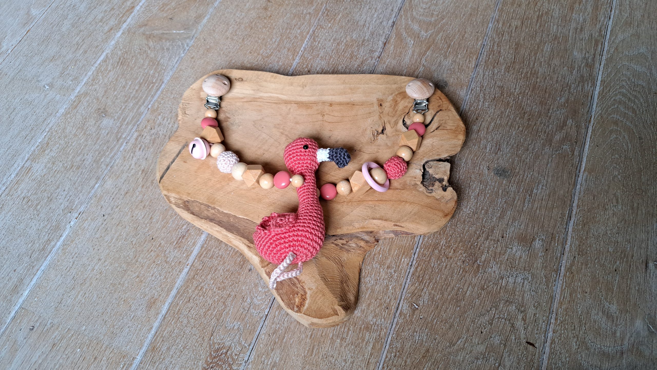 - De kralen zijn gemaakt van natuurlijk hout en van siliconen.