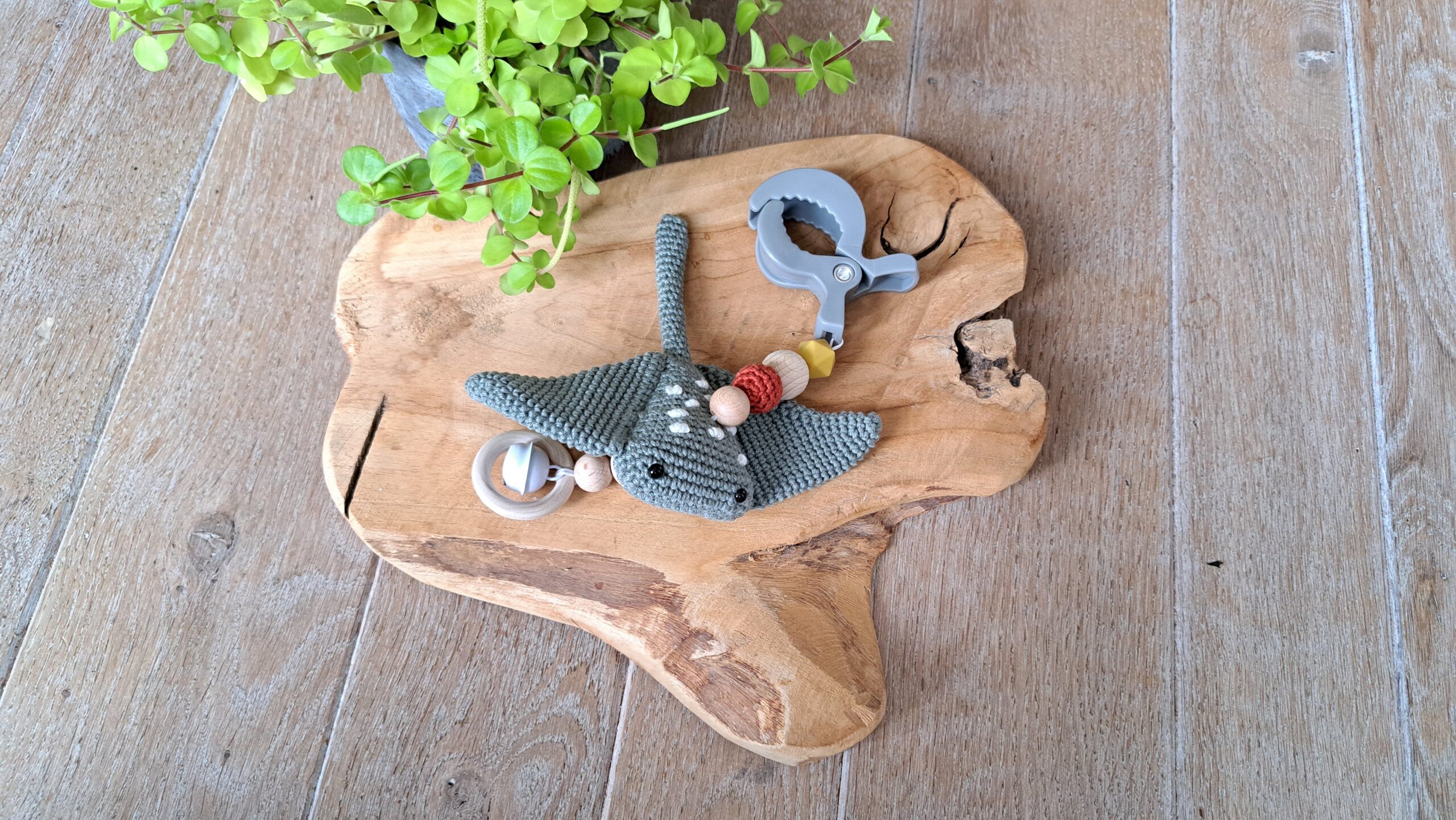 Deze rog kun je aan de maxicosi, de wagen of in de box hangen.